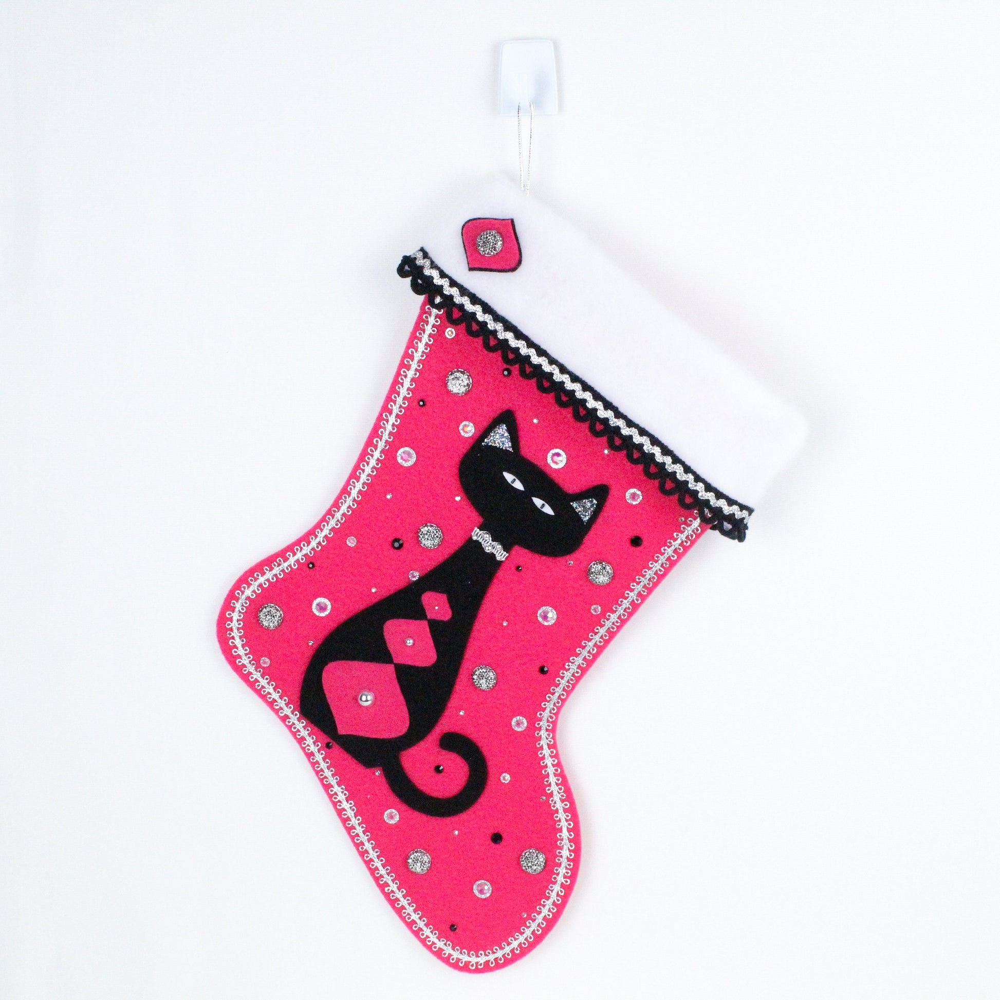 Black cat on pink felt Christmas stocking