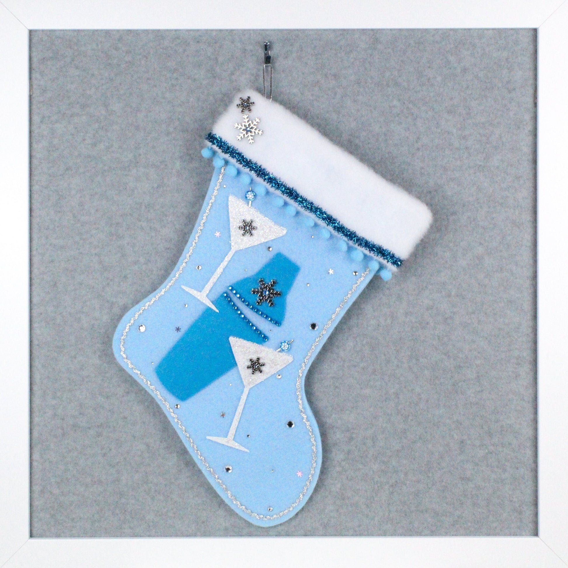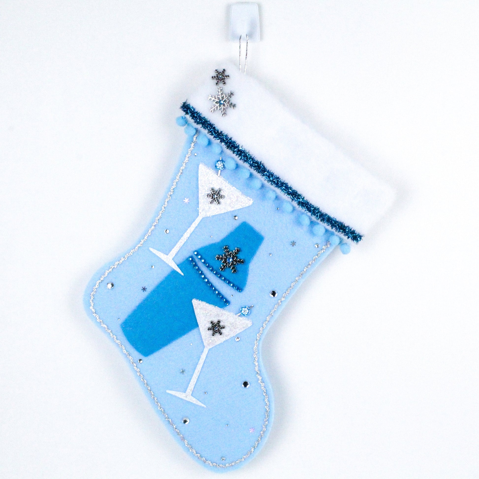 Shaker & glasses: Blue felt and white felt with chunky clear glitter paint.