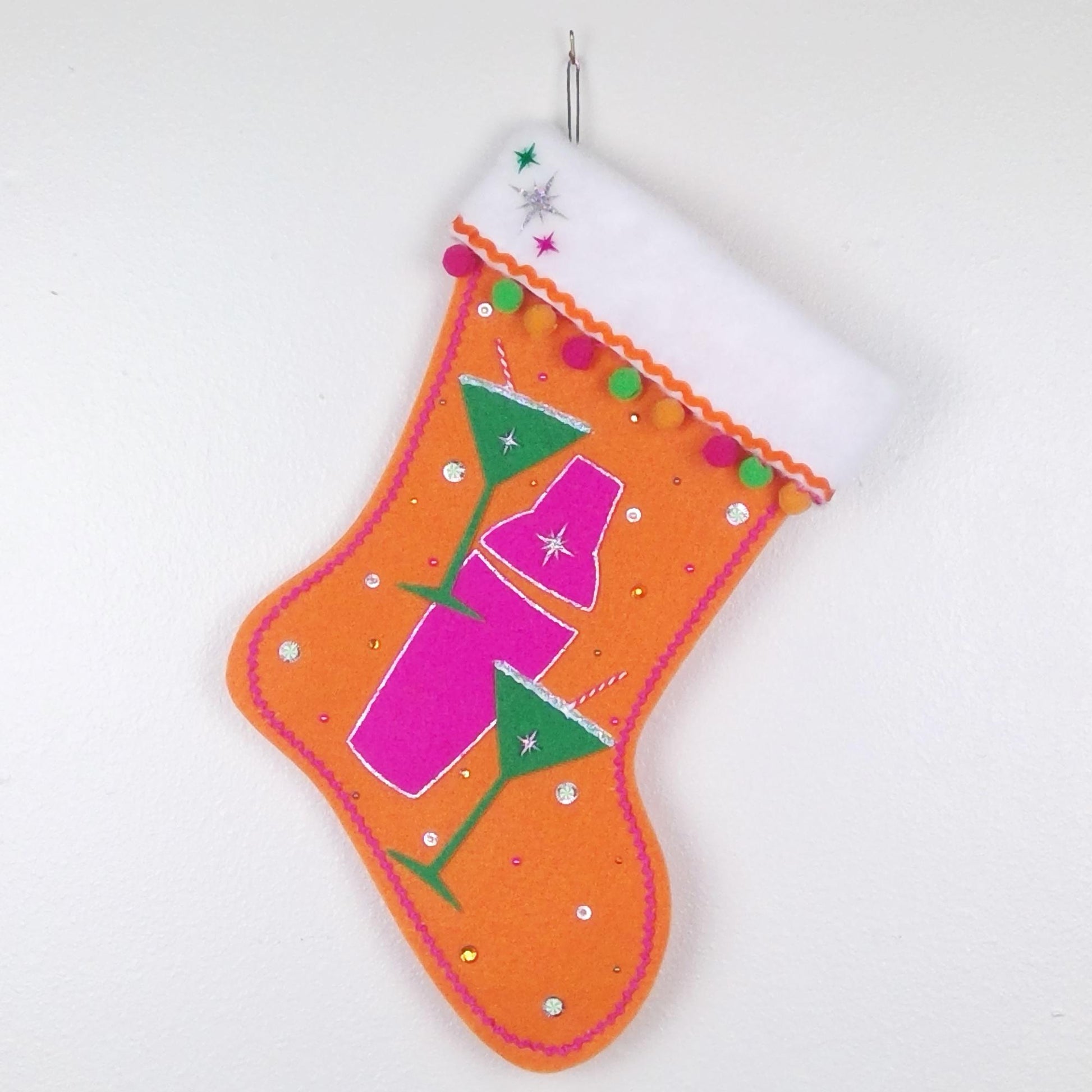 Shaker & glasses: Hot pink felt and holiday green felt.