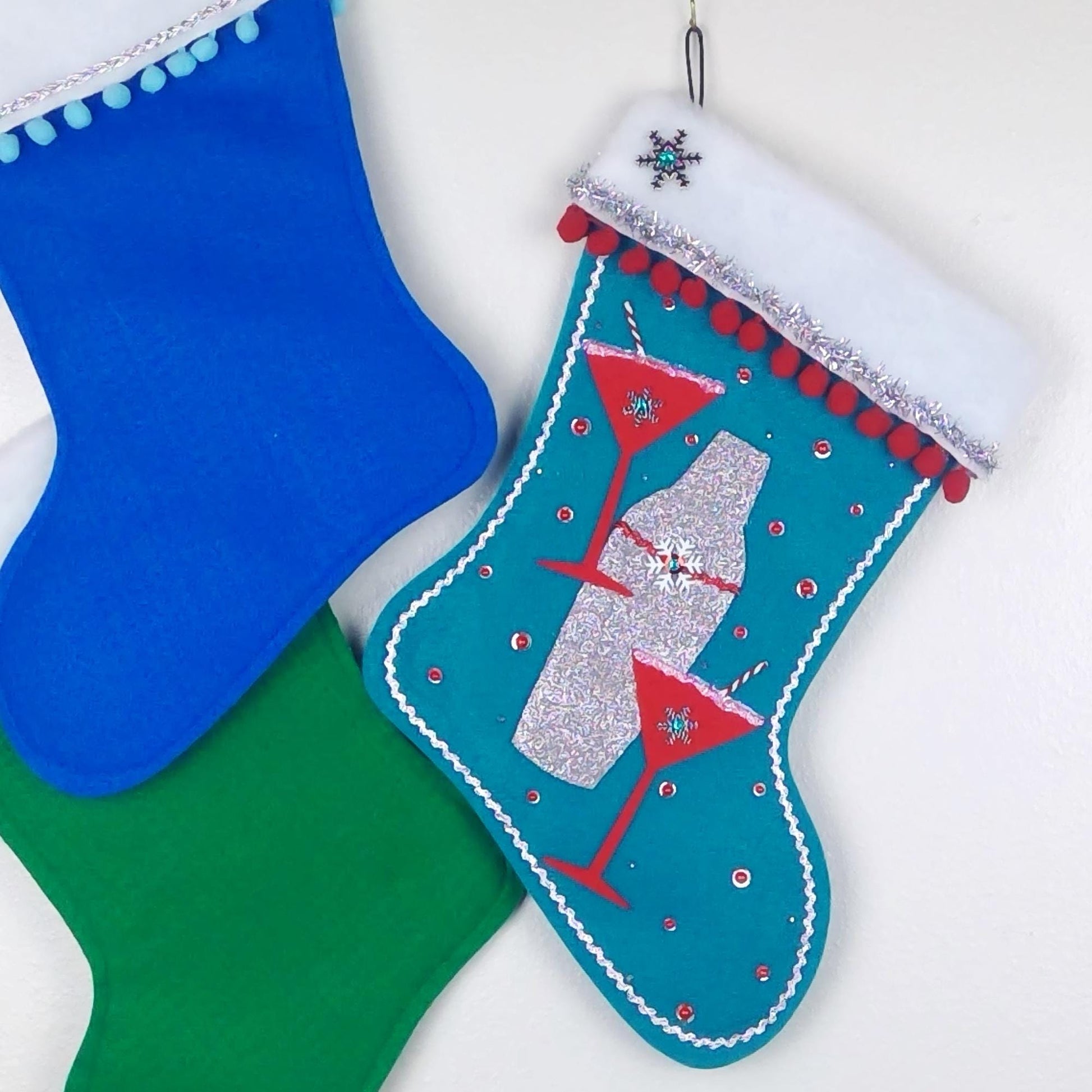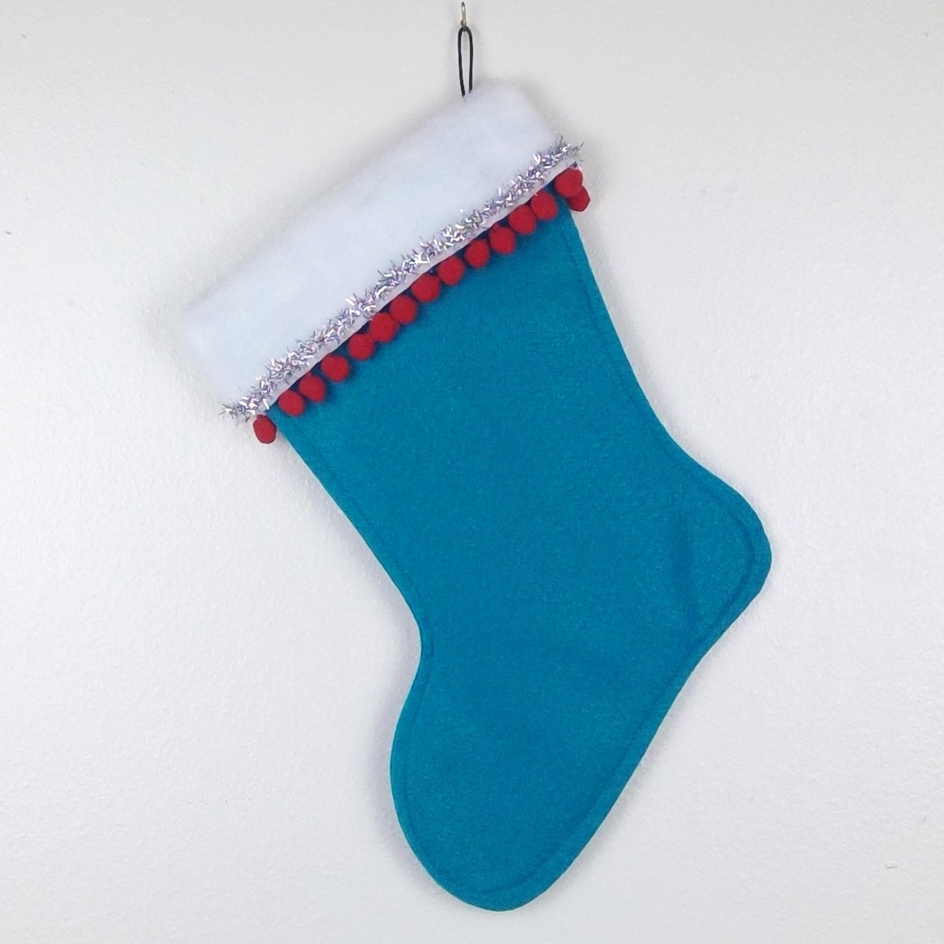 Stocking base: Turquoise felt (it's a difficult color to photograph so I've included a photo of the color next to royal blue and holiday green to show the difference).
