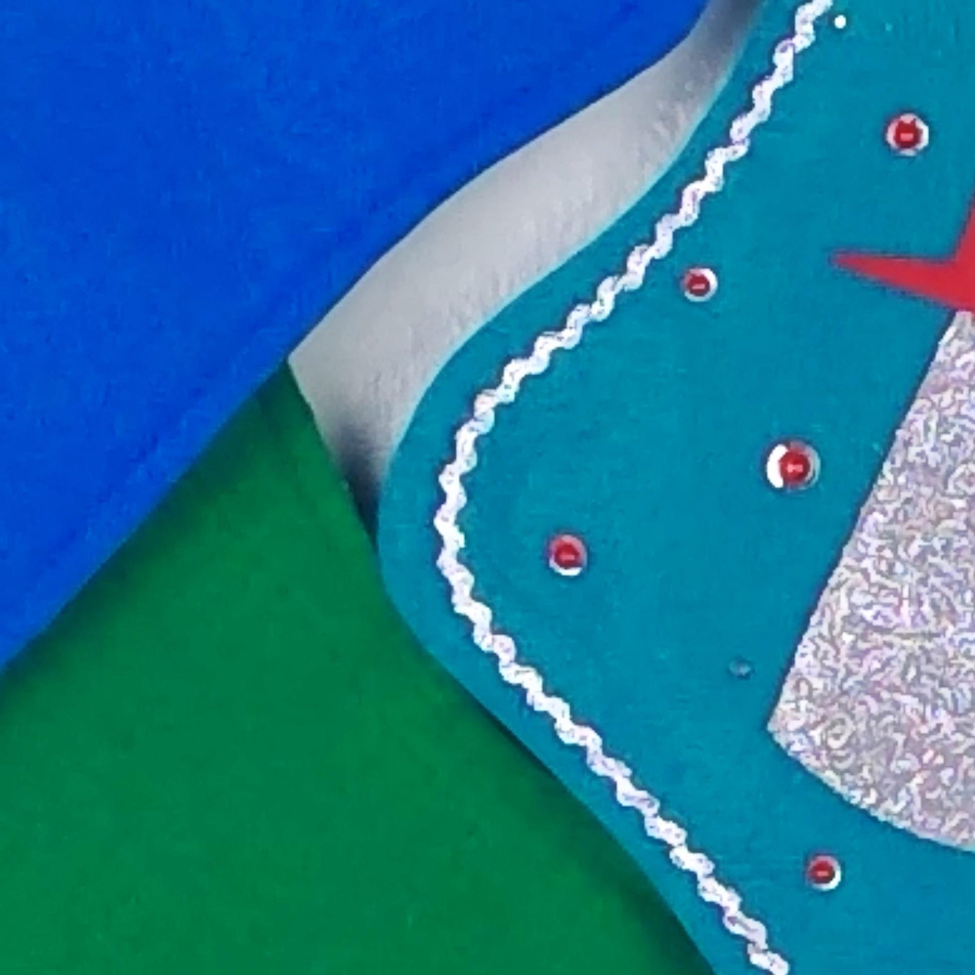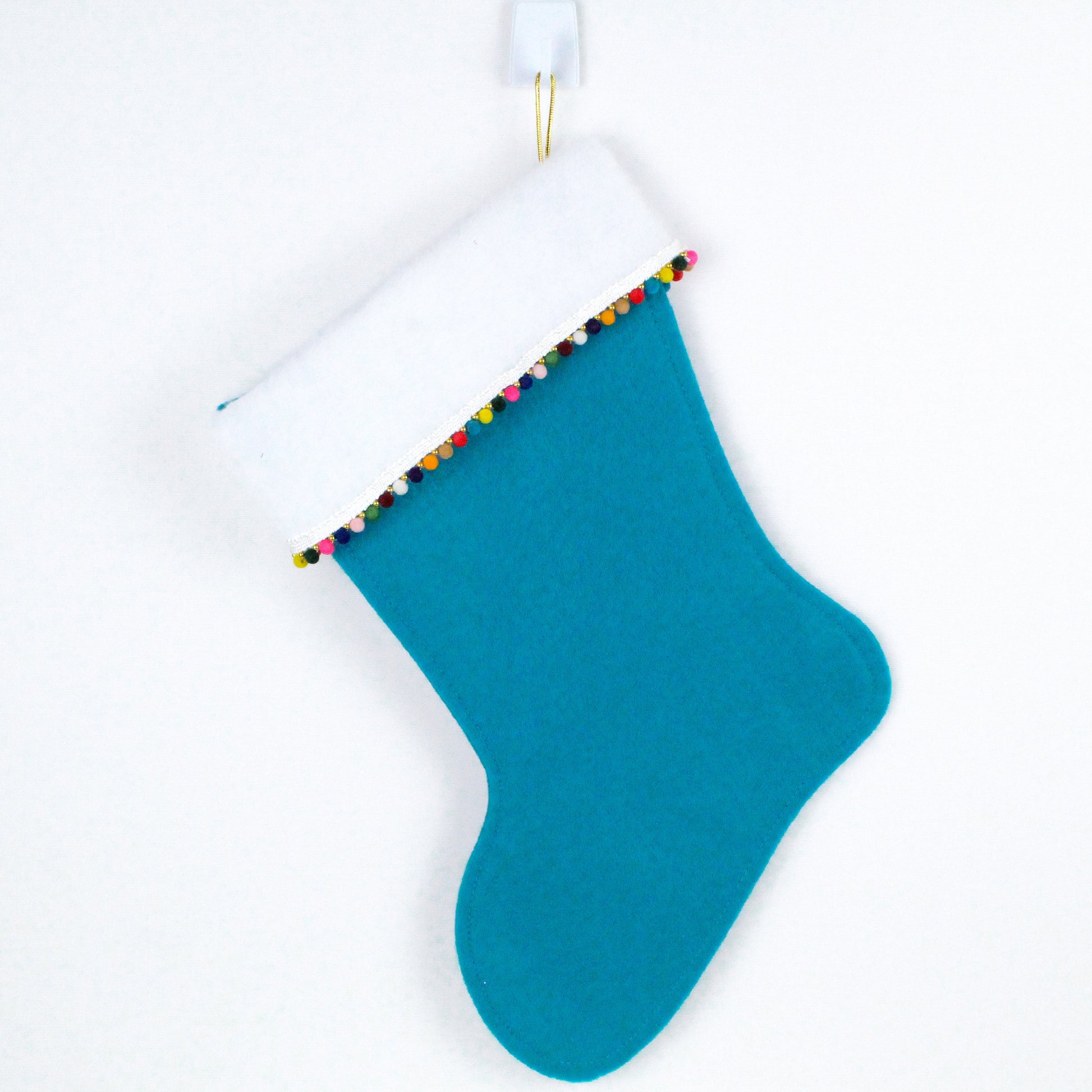 Stocking base: Turquoise felt (it's a difficult color to photograph so I've included a pic of it against holiday green and royal blue to show the contrast).