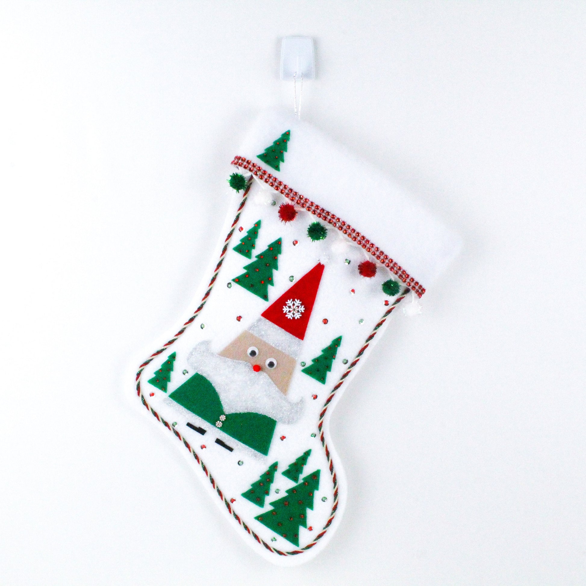 Stocking base: White glitter felt (it's made that way so there's no loose glitter!).