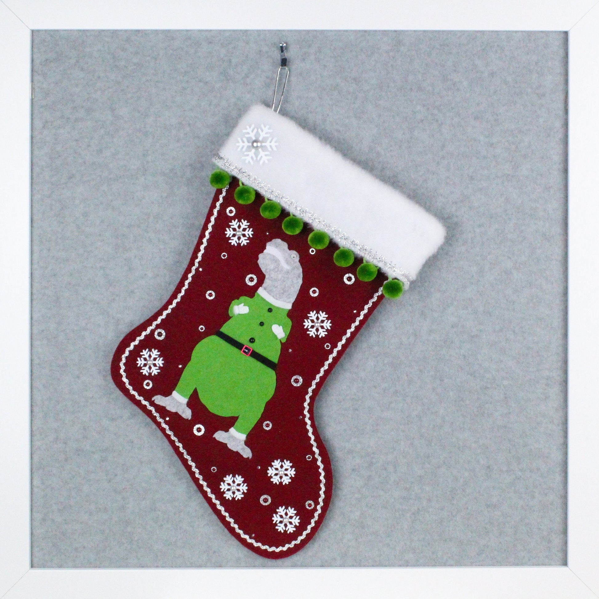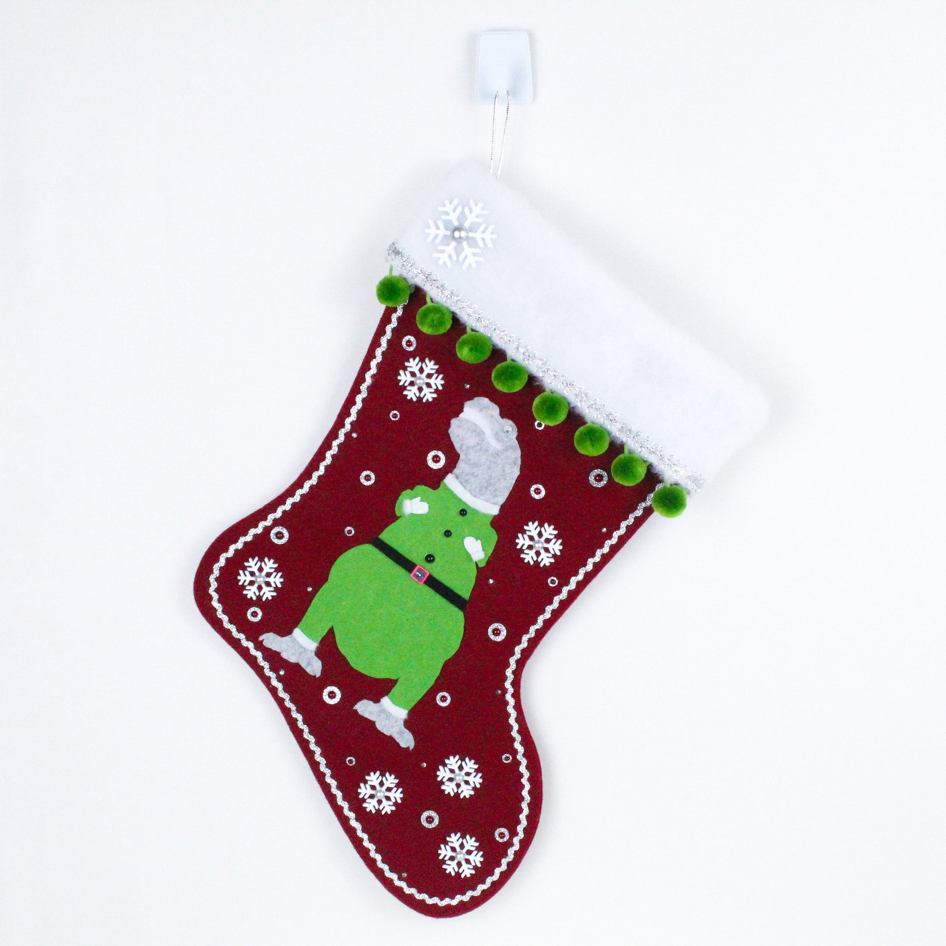 Kukukitchoo stockings are made by (me!) Tonya Newton. From sewing, sketching, gluing/crafting, to selling .. each and every stocking I make is handmade and one of a kind. I never repeat the same character/decoration twice, unless I'm asked to and even then it's never an exact match. The stocking bases are either a solid or glittered polyester felt. These are cut and glued around the edges, then machine stitched. The faux fur at the top of the stocking is sewn onto the felt and is made of Eco-fi, a high-quality fiber that is created from 100% post-consumer recycled and BPA-free plastic bottles. The front stitches on each stocking are covered with trim. Decorative items used on the stockings are either purchased new (a lot are from Etsy sellers) or thrifted. I put every single stocking through a complete shake and pluck test once I'm done decorating and it's dry. A second shake test is done at the time of packaging. If something isn't right, I fix it before it's shipped. I want to be sure you're getting a quality product. And in case you're wondering .. the stockings ARE fully functional. You can use them for holding items, gifting or for just display.